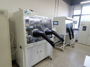 现有手套箱三台,用于不同类型金属空气电池组装;蓝电测试系统数十台,用于测试电池充放电性能;电化学工作站两台,用于测试电池材料的相关电化学性能;原位差分电化学质谱仪,用于原位表征空气电池充放电过程中产物变化;现有完整的催化反应测试机表征系统,包括光热微型反应器、气相色谱仪、质谱仪、自动化多用吸附仪等。此外,实验室还配备各种实验材料合成及电池组装相关仪器设备,如搅拌器、离心机、烘箱、马弗炉、冷冻干燥机、切片机、压片机、封口机、涂覆机、小型高速震动球磨机等。